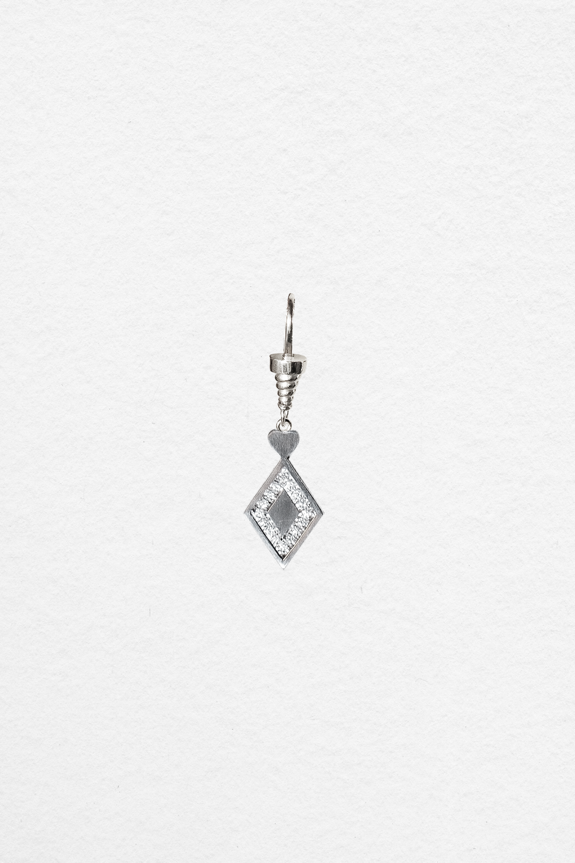 Crafted in 18K white gold, this Diamond charm represents elegance and success. The geometric design features a polished gold center framed by pavé diamonds, symbolizing the power of vision and determination.